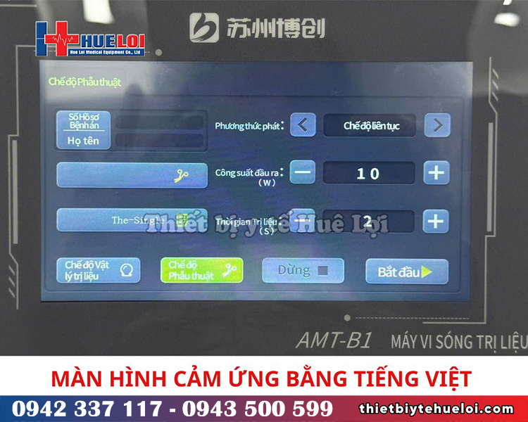 Không chỉ nổi bật về hiệu quả điều trị, máy vi sóng trị liệu AMT còn gây ấn tượng với thiết kế hiện đại, giao diện thân thiện hoàn toàn bằng Tiếng Việt, giúp thao tác dễ dàng cho cả các kỹ thuật viên mới.